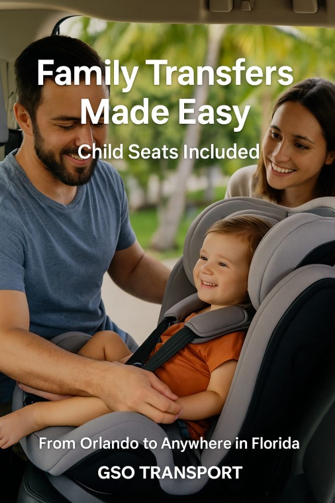 visiting Orlando. Our fleet of modern vans is equipped with child seats, extra luggage space, and